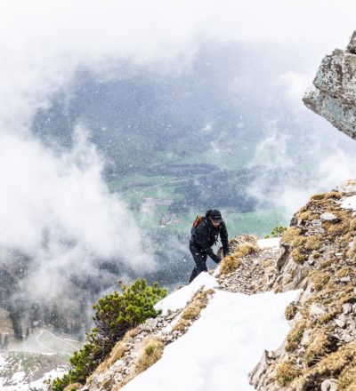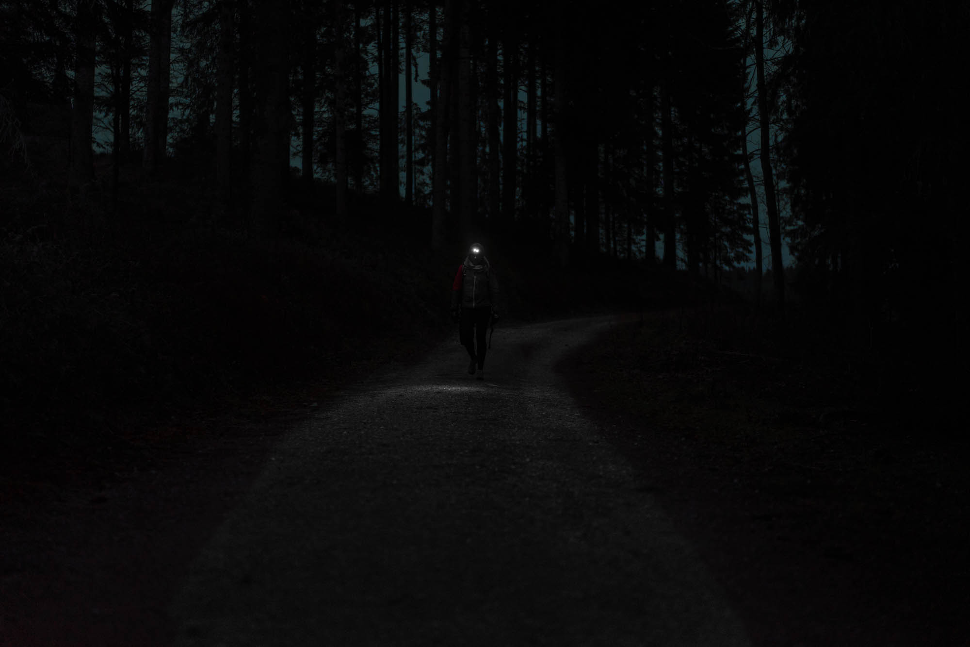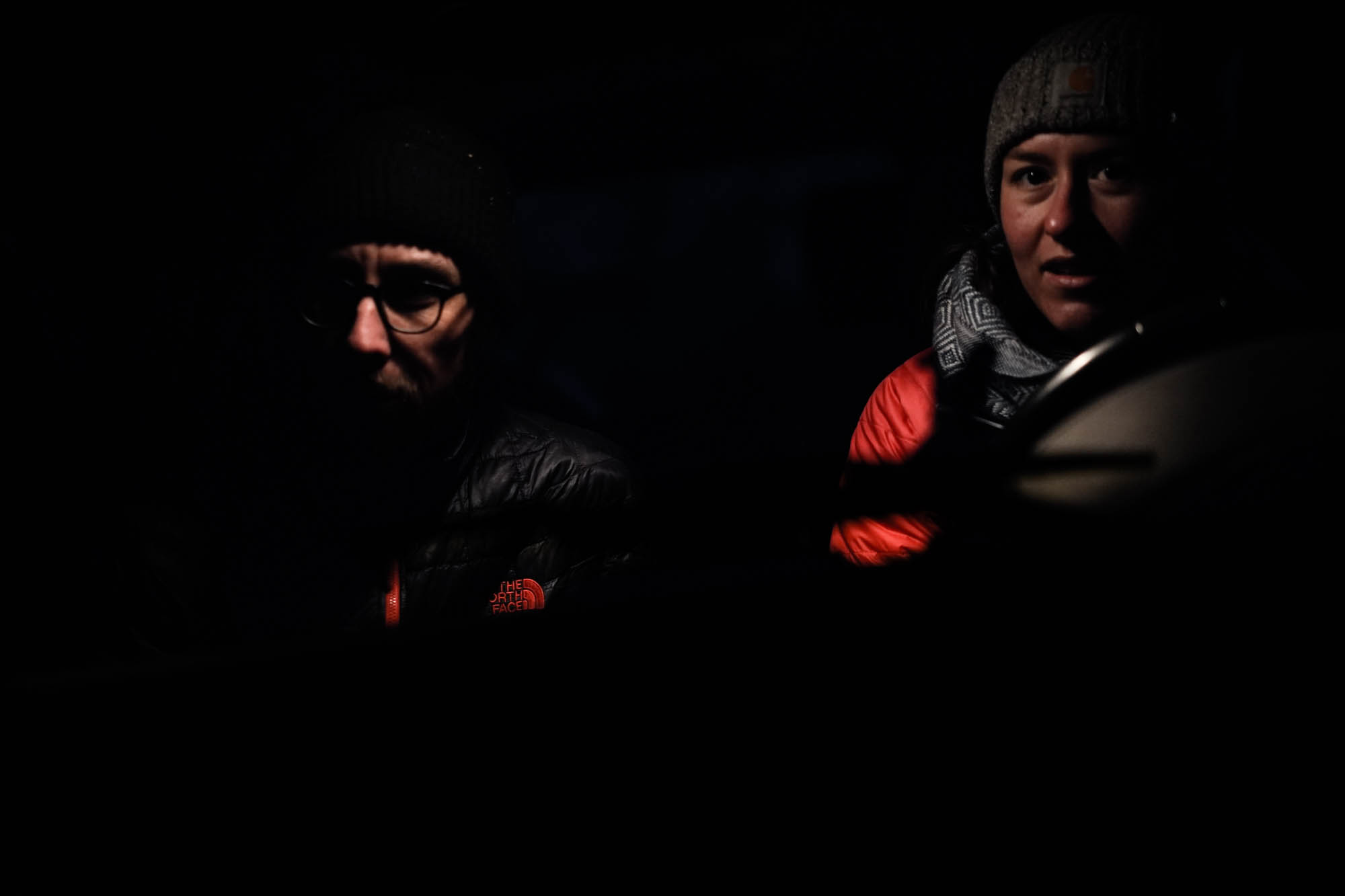 Für das letzte Stück holten wir unsere Stirnlampen heraus. Es war zwar nicht mehr weit, aber duster und der Auto rief nur nach fast fünft Stunden laut nach uns mit seiner Sitzheizung. Hier unten war alles wieder in dichtem Nebel und erst, als wir fast direkt davor standen, konnten wir erkennen, dass unseres das letzte Auto auf dem Parkplatz war.